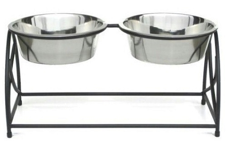 This elevated pet feeder is compact and consumes less space than conventional two-bowl feeders. A traditional style double diner with a butterfly inspired design on its sides. Non-skid plastic feet on legs. Its rounded sides keeps food and water centered for ease of eating. Sturdy wrought iron construction ensures that it lasts a lifetime.